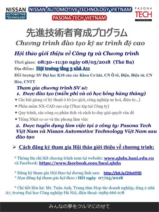 Công ty Nissan technoLogy tổ chức buổi hội thảo giới thiệu chương trình đào tạo kỹ sư trình độ cao